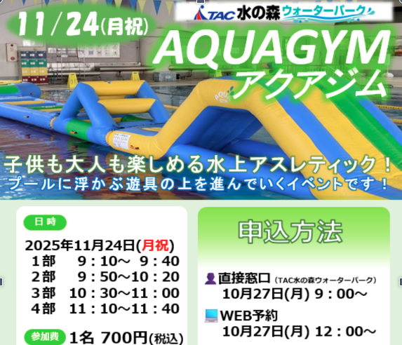 【水の森】💧水上アスレティック・アクアジム💧開催のお知らせ -