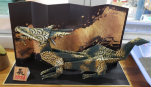 今年は辰年ということで、折り紙担当の作品をロビーで展示しております。