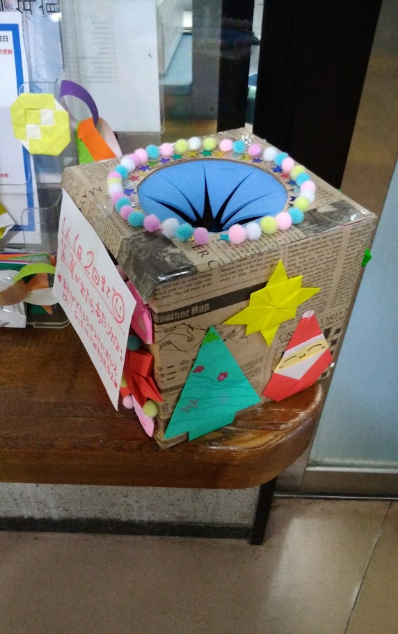 みんなで作ったクリスマスツリー!!とってもきれいなツリーとなりました!!たくさんぬってくれたぬりえ!!ありがとう!!最終週はみんなが楽しんでくれた運試しBOX!!ラッキーボーイ、ラッキーガールがたくさん誕生しました(笑)また来年をお楽しみに♡